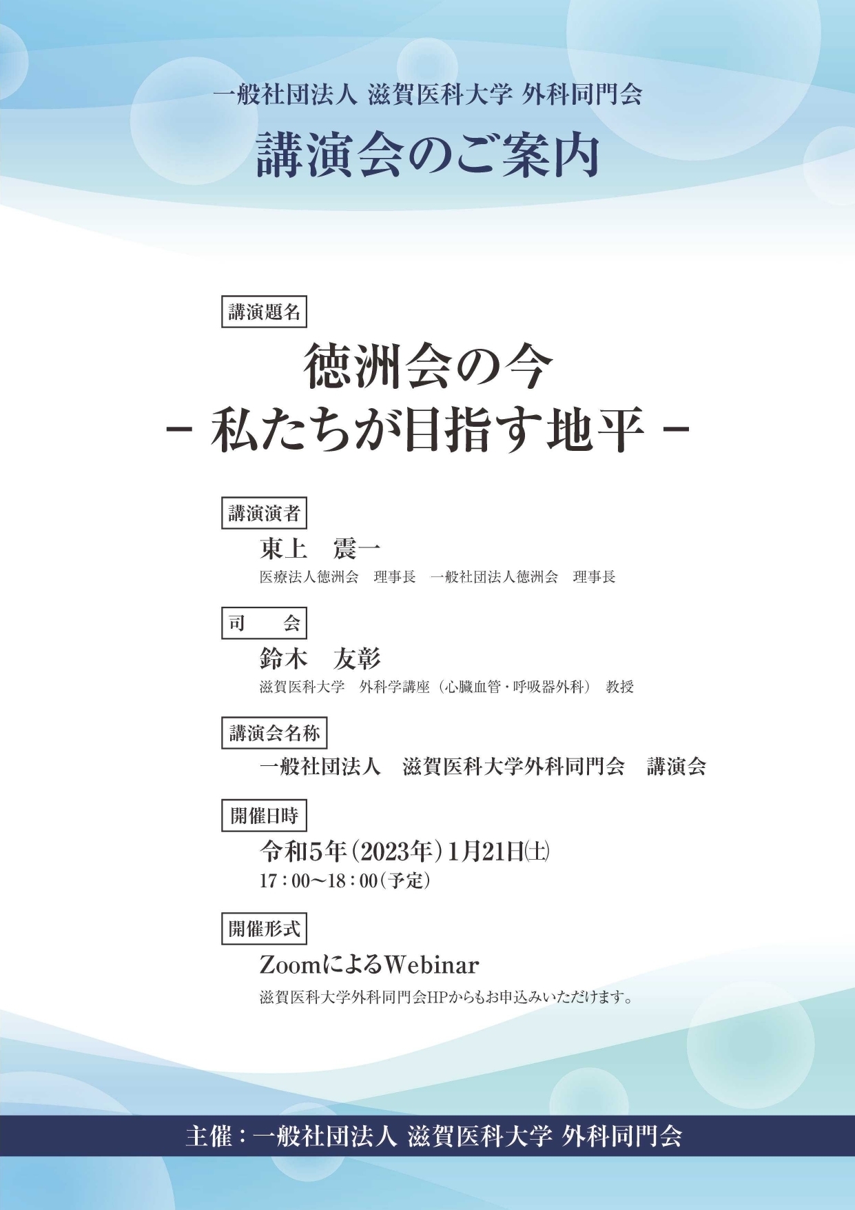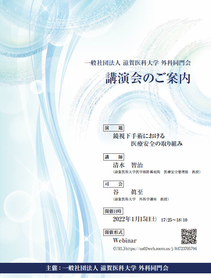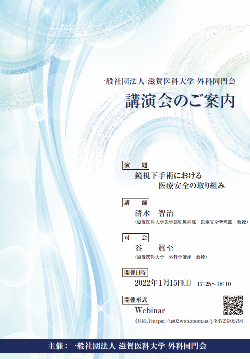 コロナ感染拡大からすでに2年がたち、コロナ感染に対する反省と対策を鑑みたニューノーマルが叫ばれる世界となりました。同門会では私が理事長に就任し1年が経ちましたが、滋賀医科大学外科同門会は職能集団として新しい提案をしていこうとした矢先に、コロナ感染拡大となり、同門会の活動も大きな制約をうけることになりました。