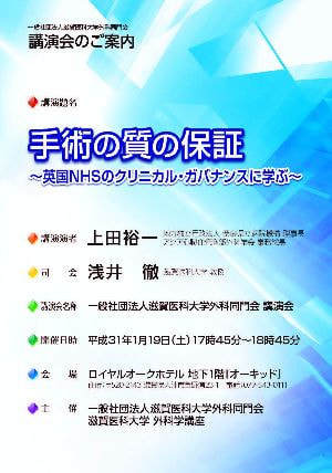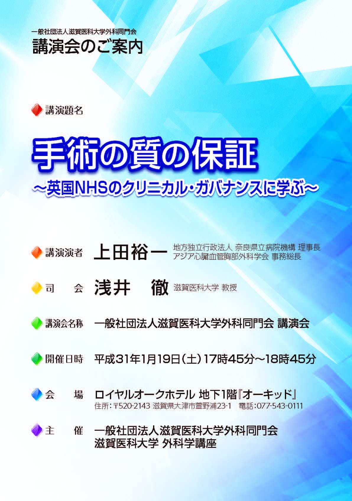 外科同門会総会同日、奈良県立病院機構 理事長 上田 裕一先生をお招きし、講演会を開催します。